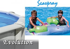 We install SeaSpray Evolution Pools, these come in 24 foot or 27 foot round. The walls are 52 inches high. This includes 2 main drains and a beaded liner.
